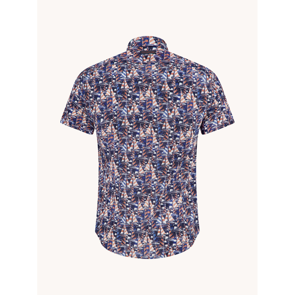 Met dit comfortabele overhemd van A Fish Named Fred vaar je stijlvol de zomer in. Het shirt is bedrukt met een dynamisch all-over zeilbotenpatroon, perfect voor de man die houdt van wind, water en originele prints. Voorzien van Fred’s herkenbare details zoals een contrasterende kraag en binnenlabel is dit een ideaal shirt voor zomerse evenementen of een borrel op het dek.