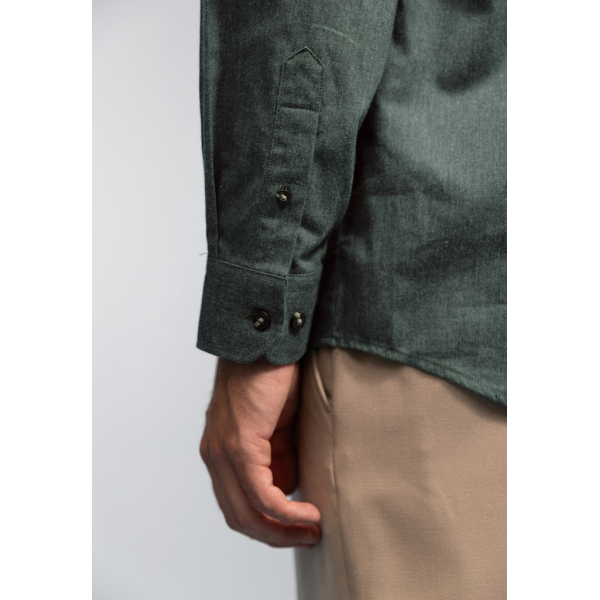 De twillstof met geborsteld oppervlak voelt zacht aan en biedt aangename warmte, terwijl de diagonale weefstructuur zorgt voor diepte en een tijdloze look.
