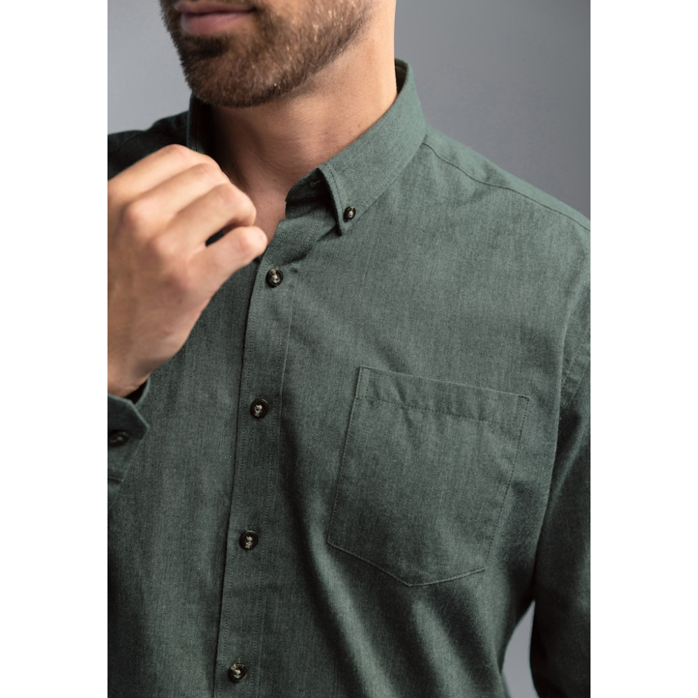 Dit effen overhemd van BlueFields met een button-downkraag is voorzien van een borstzak. De twillstof met geborsteld oppervlak voelt zacht aan en biedt aangename warmte, terwijl de diagonale weefstructuur zorgt voor diepte en een tijdloze look.