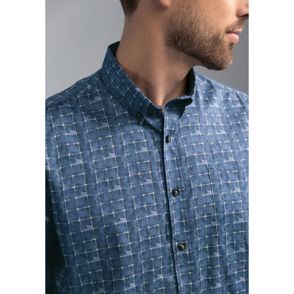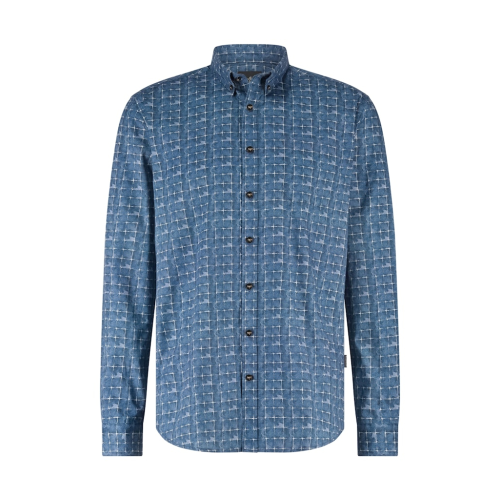 Dit overhemd van BlueFields met geometrische print is voorzien van een button-downkraag en borstzak. De gladde poplinstof met dichte weving zorgt voor een strak oppervlak waarop het dessin helder uitkomt, terwijl de lichte stretch bijdraagt aan extra comfort.