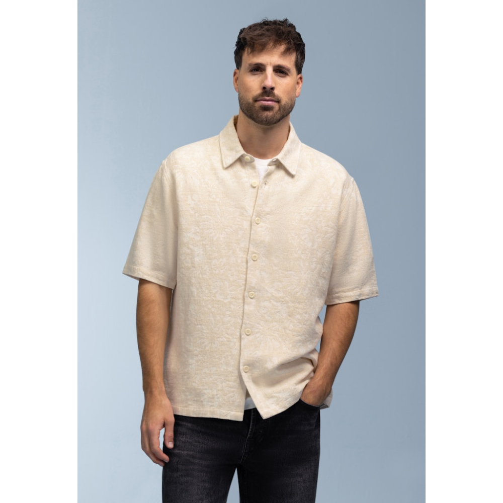 Dit shirt van BlueFields heeft korte mouwen voor een zomerse uitstraling. Het effen ontwerp met een gladde afwerking zorgt voor een strakke en verzorgde look. Dankzij de linnenmix voelt het overhemd licht en luchtig aan, ideaal voor warmere dagen.