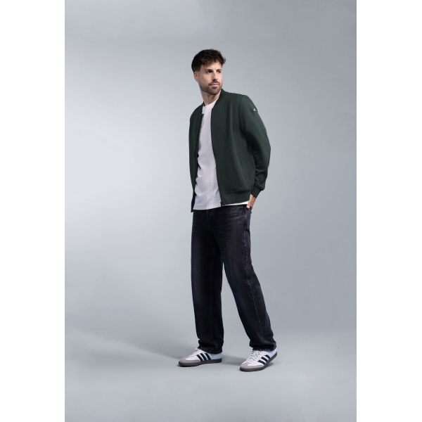 Dit sweat bombervest van BlueFields heeft een wafelachtig doorgestikt patroon op de borst en effen mouwen, waarbij de geribde boorden en de rubberen badge op de mouw stoere accenten vormen.