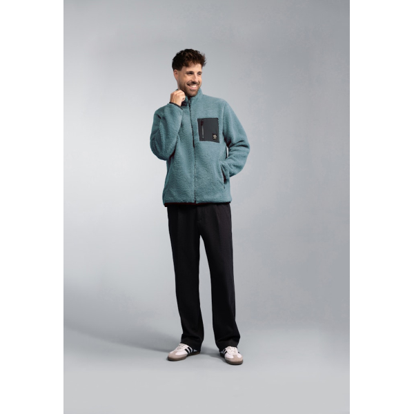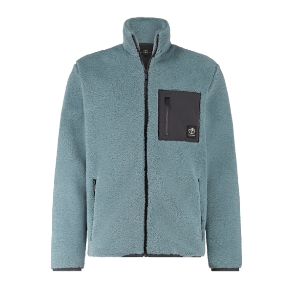 Dit comfortabele en zachte teddy vest van BlueFields heeft een opstaande kraag, ritszak met logobadge op de borst, steekzakken met rits en een ritssluiting.