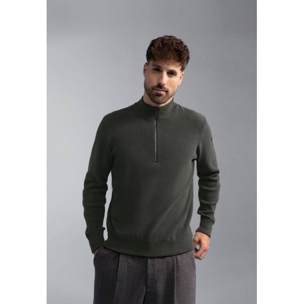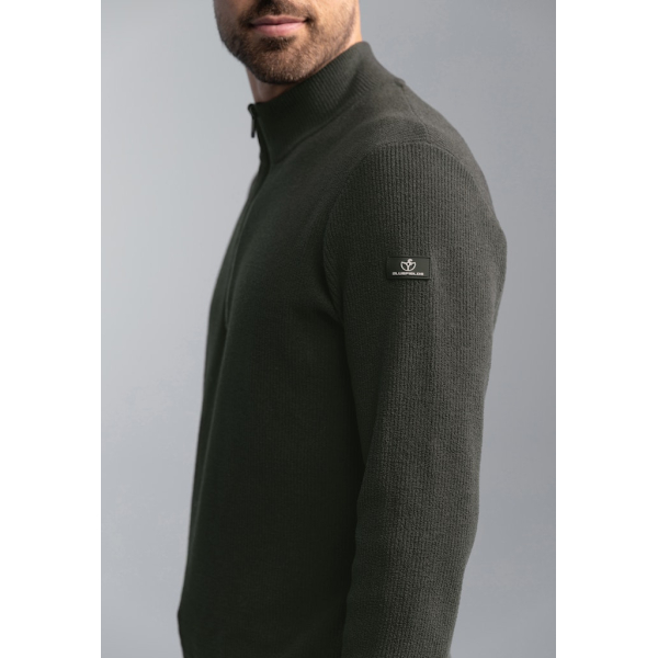 Deze effen trui van BlueFields met een halve rits is uitgevoerd met een rubberen badge op de mouw en een fijn structuurdessin dat een voelbaar reliëf creëert.