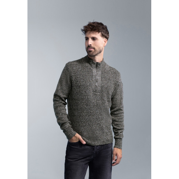 Deze gemêleerde trui van BlueFields met halve rits is gemaakt van tweed-garen met een robuuste look en speelse spikkelstructuur.