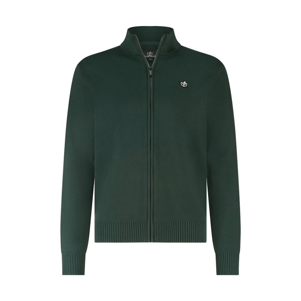 Dit effen vest van BlueFields met een hoge kraag is voorzien van een ritssluiting, rubberen badge op de borst, ribdetail bij de mouwinzet en 3x3 geribde boorden.