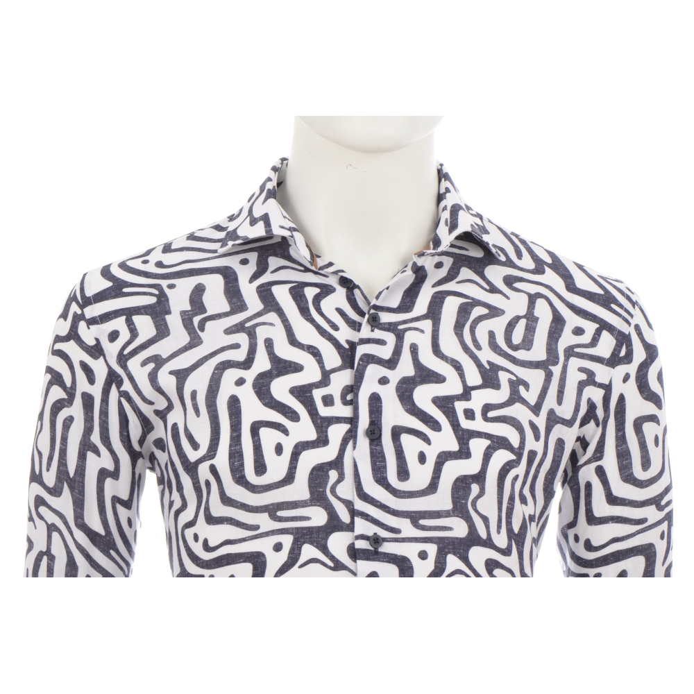 Overhemd van Eden Valley met een allover print, korte mouwen en een button-down kraag. Regular Fit Gemaakt van 55% linnen en 45% katoen Kleur : Navy