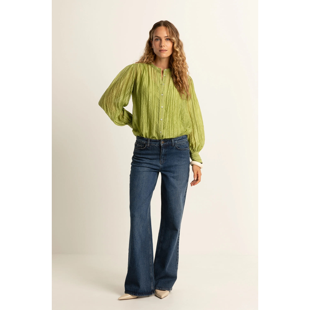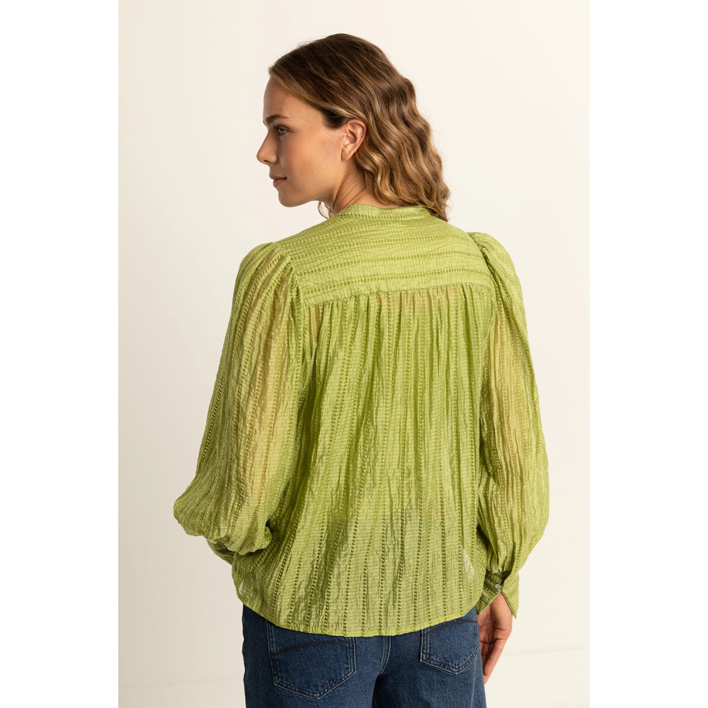 Prachtige blouse van Expresso met een ingeweven structuur en subtiele transparantie. Dit rechtvallende model heeft pofmouwen en een ronde hals.
