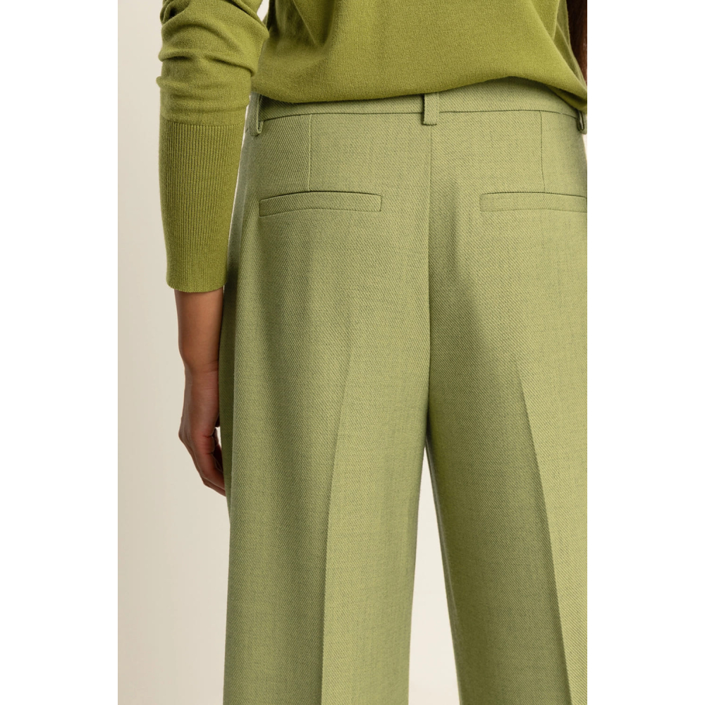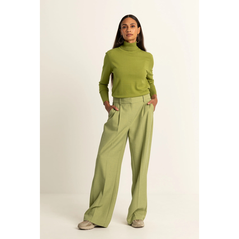 Een elegante broek van Expresso met een recht, wijd uitlopend silhouet. De broek heeft een hoge taille, steekzakken en scherpe vouwen aan de voorzijde die de lengte extra benadrukken.
