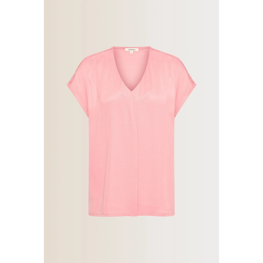 Soepelvallende elegante top van Expresso met aangeknipte korte mouwen en een diepe V-hals. Ideaal voor zowel een casual daglook als een geklede avondstijl. Gemaakt van 56% cupro en 44% viscose Kleur : Deep Blush