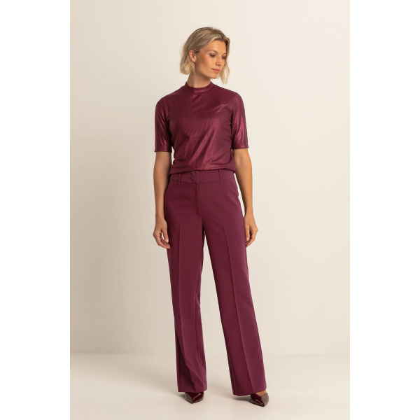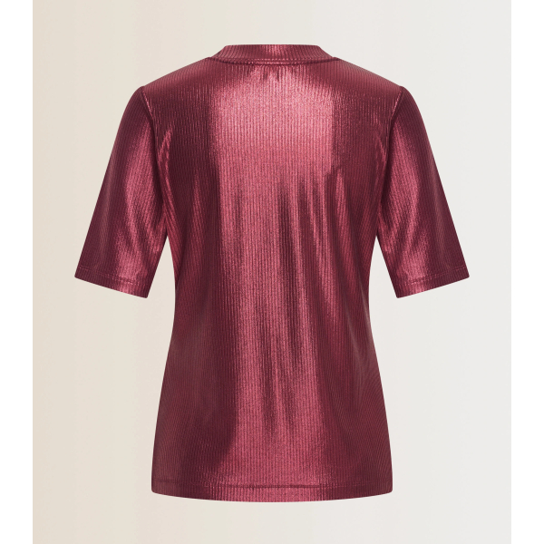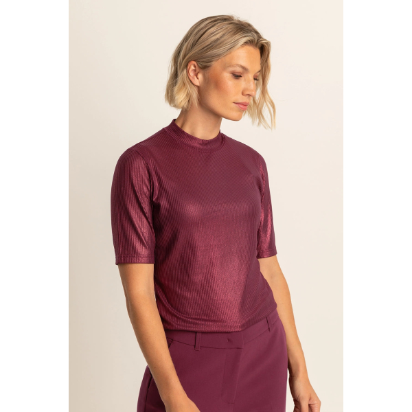 De subtiele ribstructuur gecombineerd met een glanzende finish geeft deze top een moderne, feestelijke uitstraling.