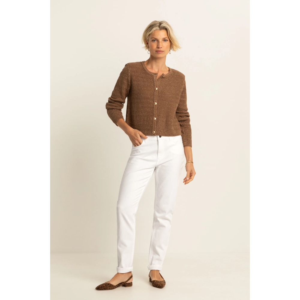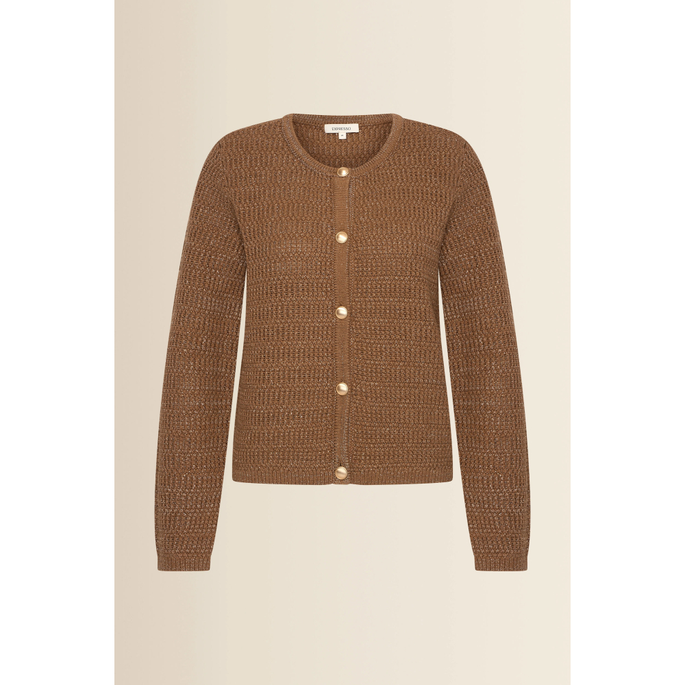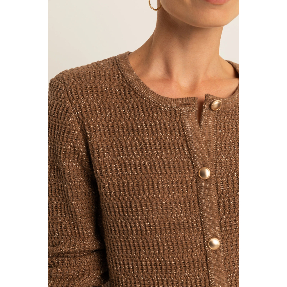 Fijngebreide vest van Expresso met een ronde hals, knoopsluiting en sparkle. De opengewerkte structuur geeft dit vest een luchtige, uitstraling draag ‘m losjes over een top of dichtgeknoopt als trui, perfect om casual looks net wat chiquer te maken.