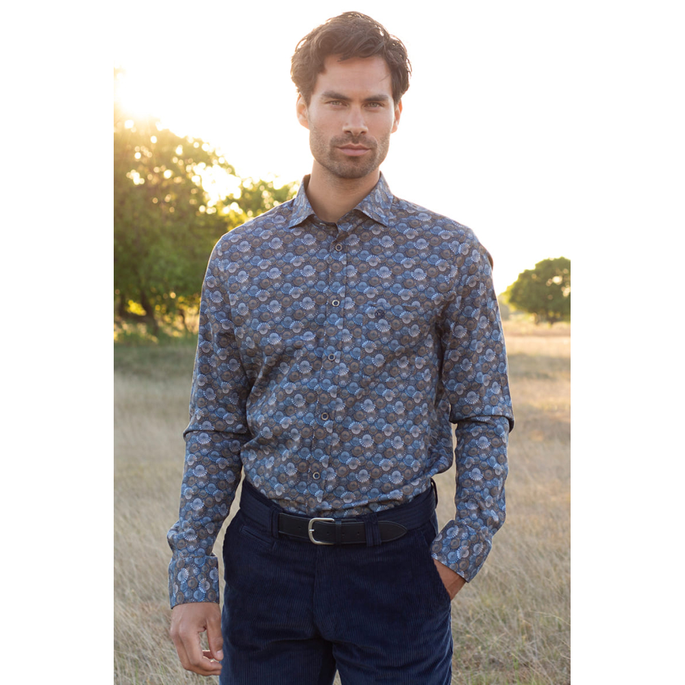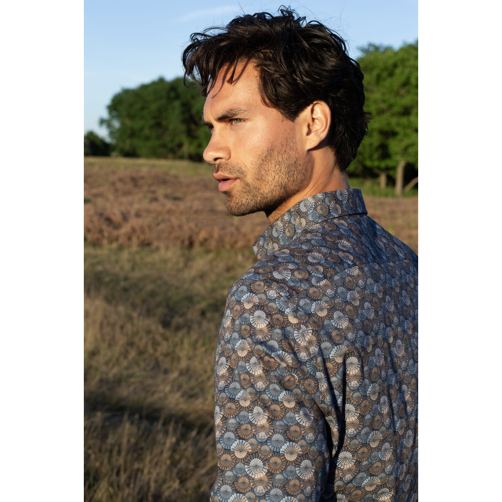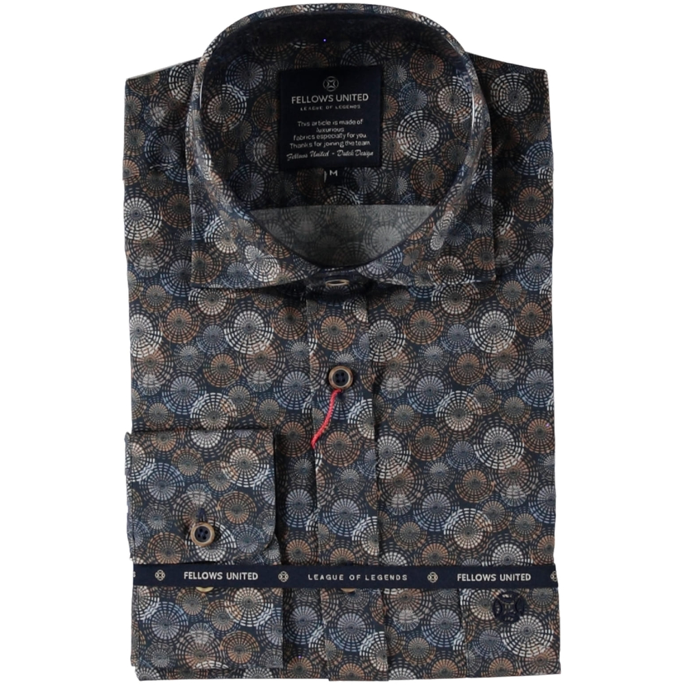 Overhemd van Fellows United met een stijlvolle cirkel print en een borstzak. Regular Fit Gemaakt van 97% katoen en 3% elastaan Kleur : Mid Blue