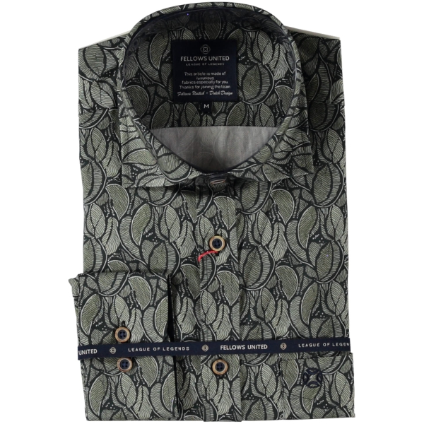 Overhemd van Fellows United met een stijlvolle bladprint en een borstzak.
