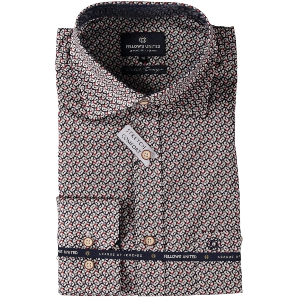 Overhemd van Fellows United met een stijlvolle oval print en een borstzak. Regular Fit Gemaakt van 97% katoen en 3% elastaan Kleur : Bordeaux