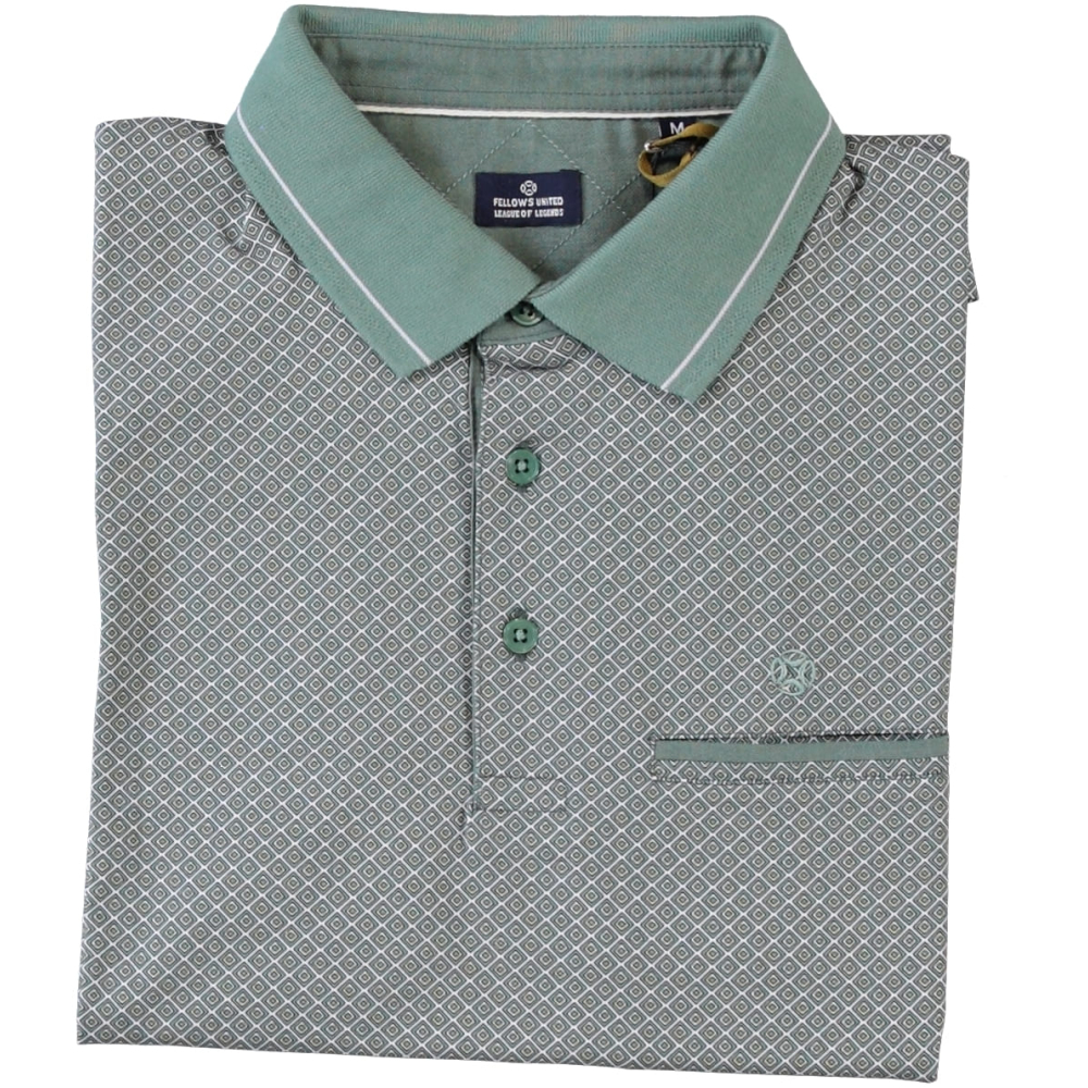 Comfortabel polo shirt van Fellows United met een subtiele diamant print, effen boorden met streep en een borstzakje.