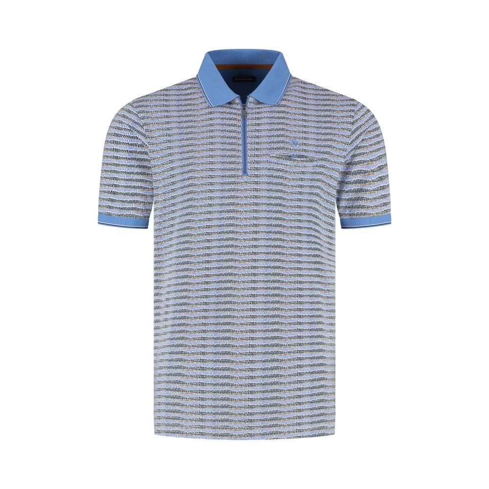 Comfortabel polo shirt van Fellows United met een structuur patroon, effen boorden met streep, borstzakje en een ritssluiting.