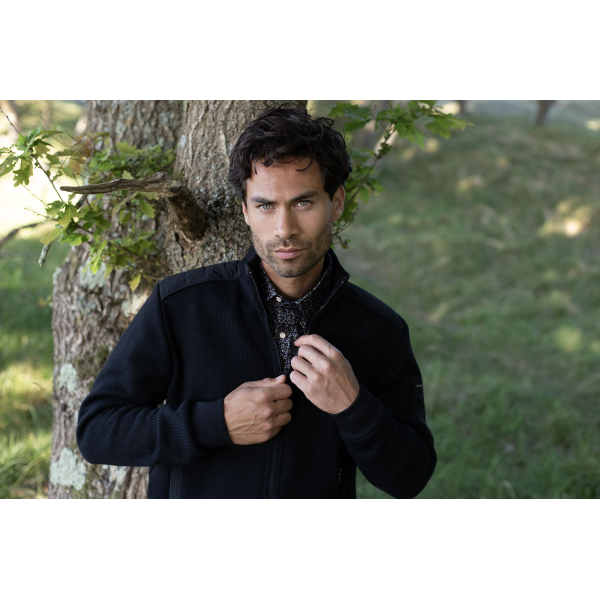 Zeer comfortabele gestructureerde vest jas van Fellows United met een opstaande kraag en twee steekzakken.