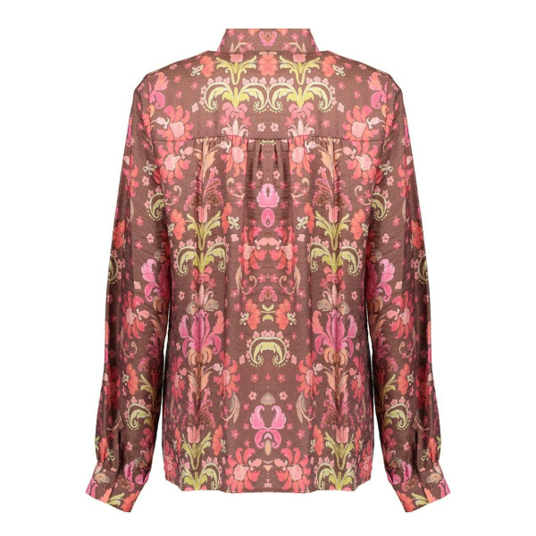 Prachtige, soepelvallende blouse van Geisha met een klassieke kraag, bloemenprint en een subtiele glans.