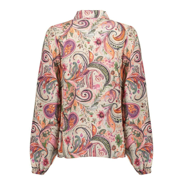 Prachtige, soepelvallende blouse van Geisha met een klassieke kraag, bloemenprint en elastische manchetten.