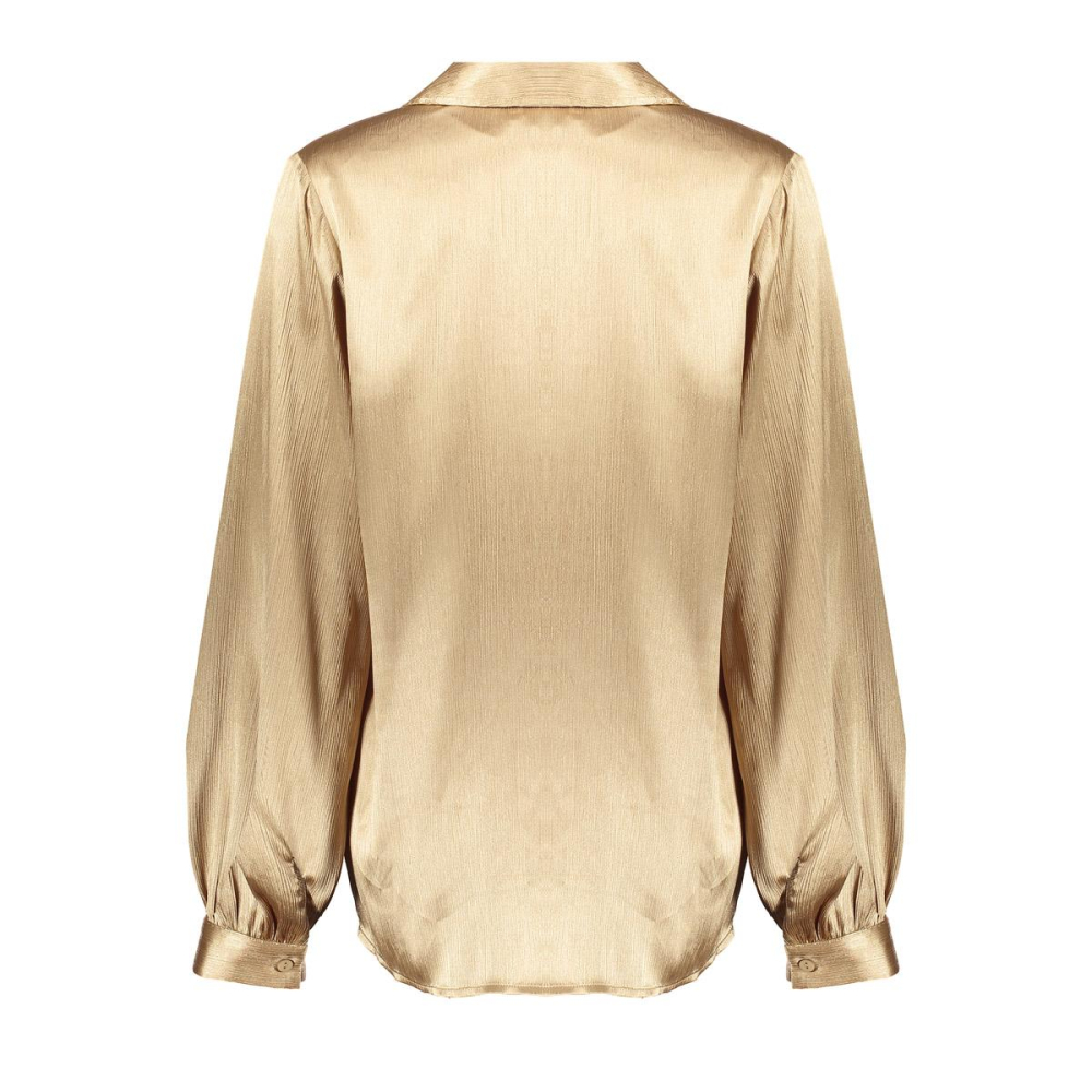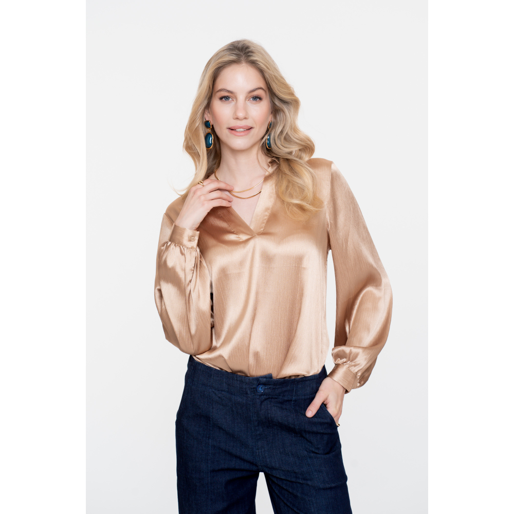 Prachtige blouse van Geisha met een diepere V-hals kraag en manchetten met een knoopje. Deze blouse top in een satijnen look heeft een subtiele glans. Een echte eye catcher voor een avondje uit of de feestdagen!