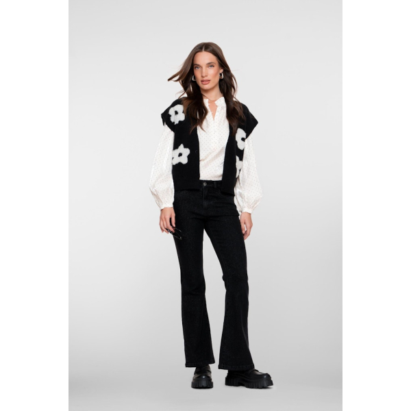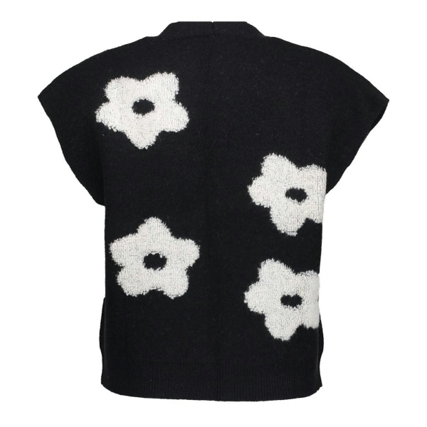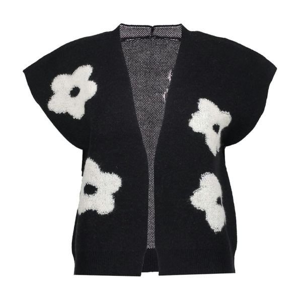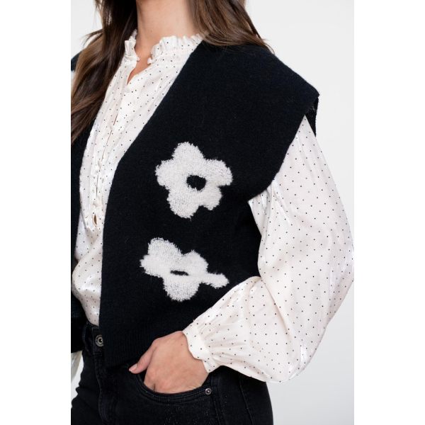 Gebreid boxy gilet vestje van Geisha met een bloem motief.
