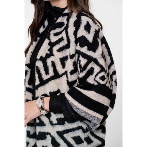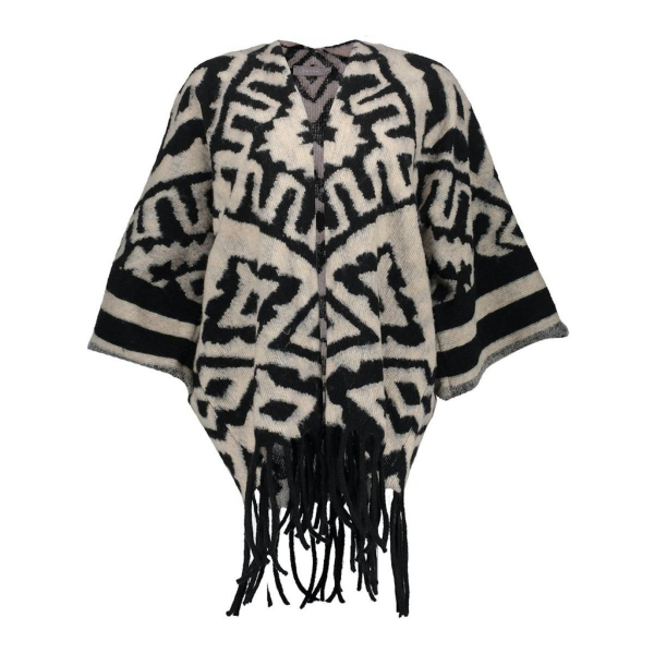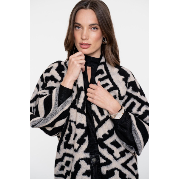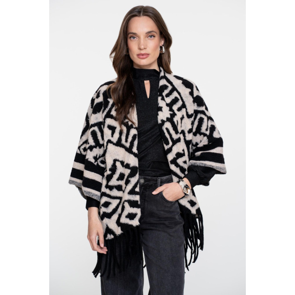 Oversized gebreide poncho van Geisha met wijde 3/4 mouwen en een jacquard print.