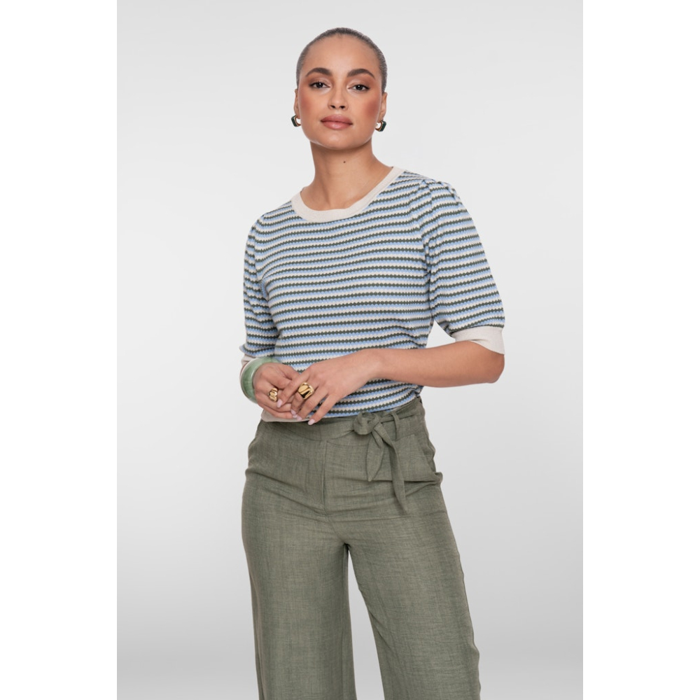 Heerlijke gestreepte pullover top van Geisha met een ronde hals en halflange pofmouwtjes met ribgebreide boorden. De pullover heeft een extra sparkle dankzij de subtiele lurex draad.
