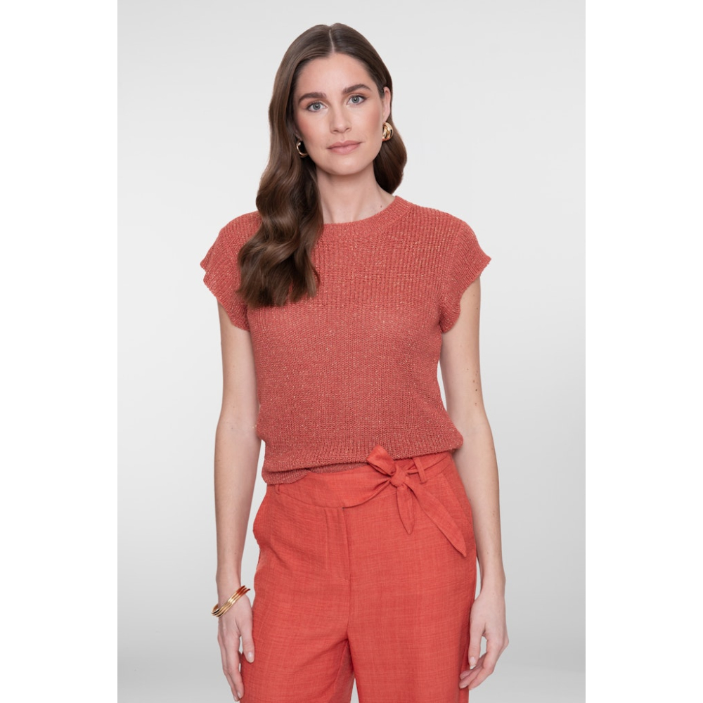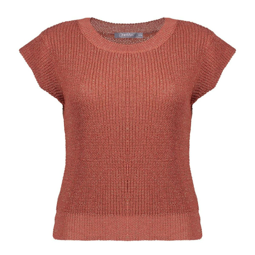 Deze stijlvolle spencer van Geisha heeft een subtiele sparkle. De aangesloten pasvorm en ronde hals zorgen voor een veelzijdige uitstraling. De fijne lurex draad geeft een zachte glans, terwijl de korte mouw met ribboord een sportief accent toevoegt. Perfect te combineren met een bijpassende pantalon of jeans voor een day of evening look.