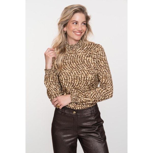 Verfijnde top van Geisha met een opstaande smock kraag en een allover print.