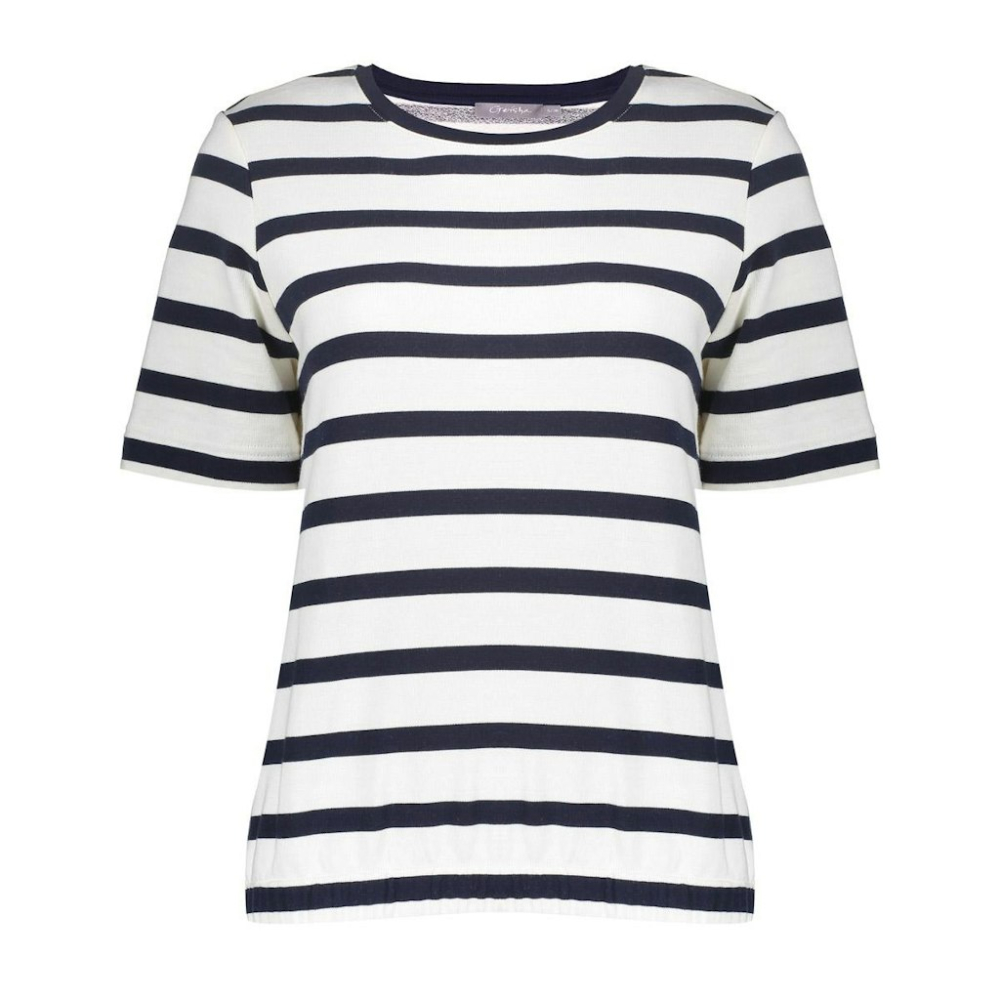 Een tijdloze Geisha top met een fris streepdessin en een comfortabele pasvorm. De korte mouwen en zachte kwaliteit maken dit item ideaal voor alledaagse looks. Een echte must have die niet mag ontbreken in je kledingkast.