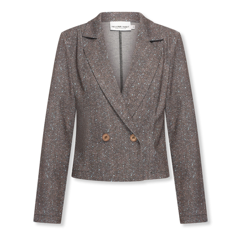 Stijlvolle korte blazer van Helena Hart met een zigzag patroon.