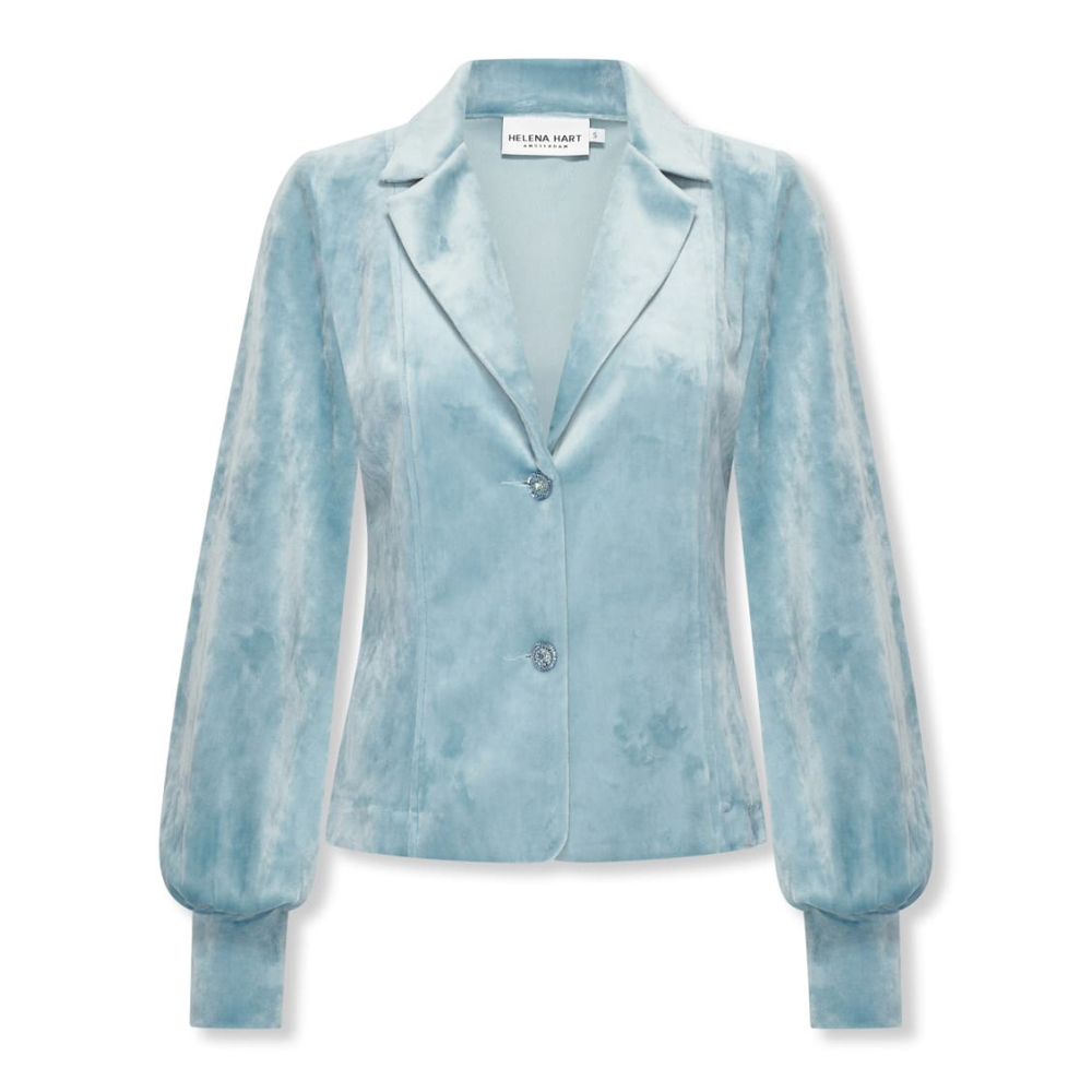 Deze velvet blazer van Helena Hart voelt heerlijk zacht en comfortabel aan. Het jasje heeft manchetten die zorgen voor een blousend pofmouw effect. Heerlijk casual chic en eenvoudig te combineren!