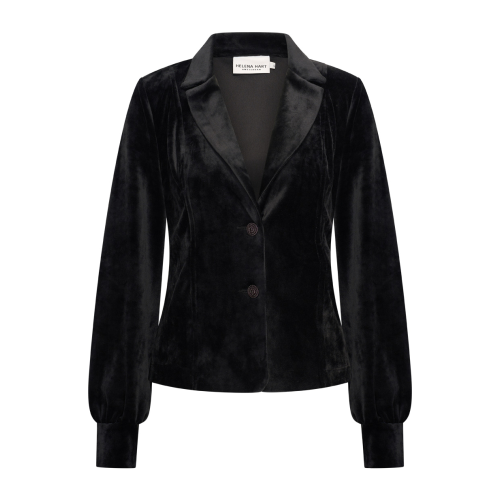 Deze velvet blazer van Helena Hart voelt heerlijk zacht en comfortabel aan. Het jasje heeft manchetten die zorgen voor een blousend pofmouw effect. Heerlijk casual chic en eenvoudig te combineren!