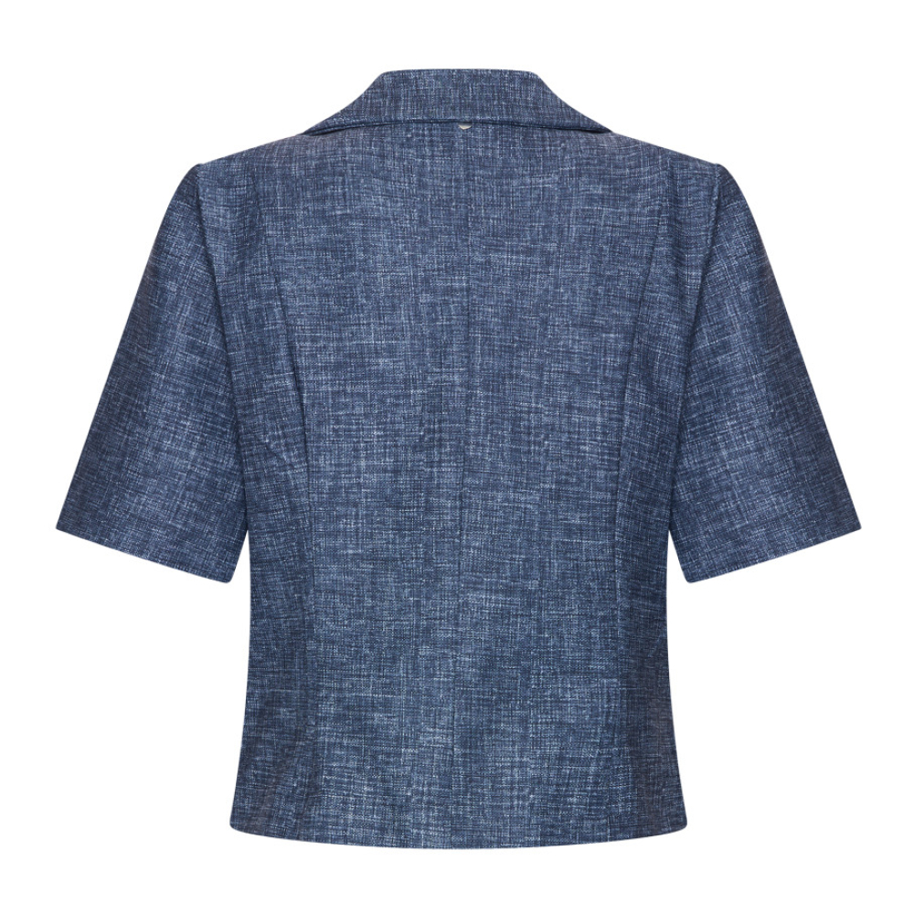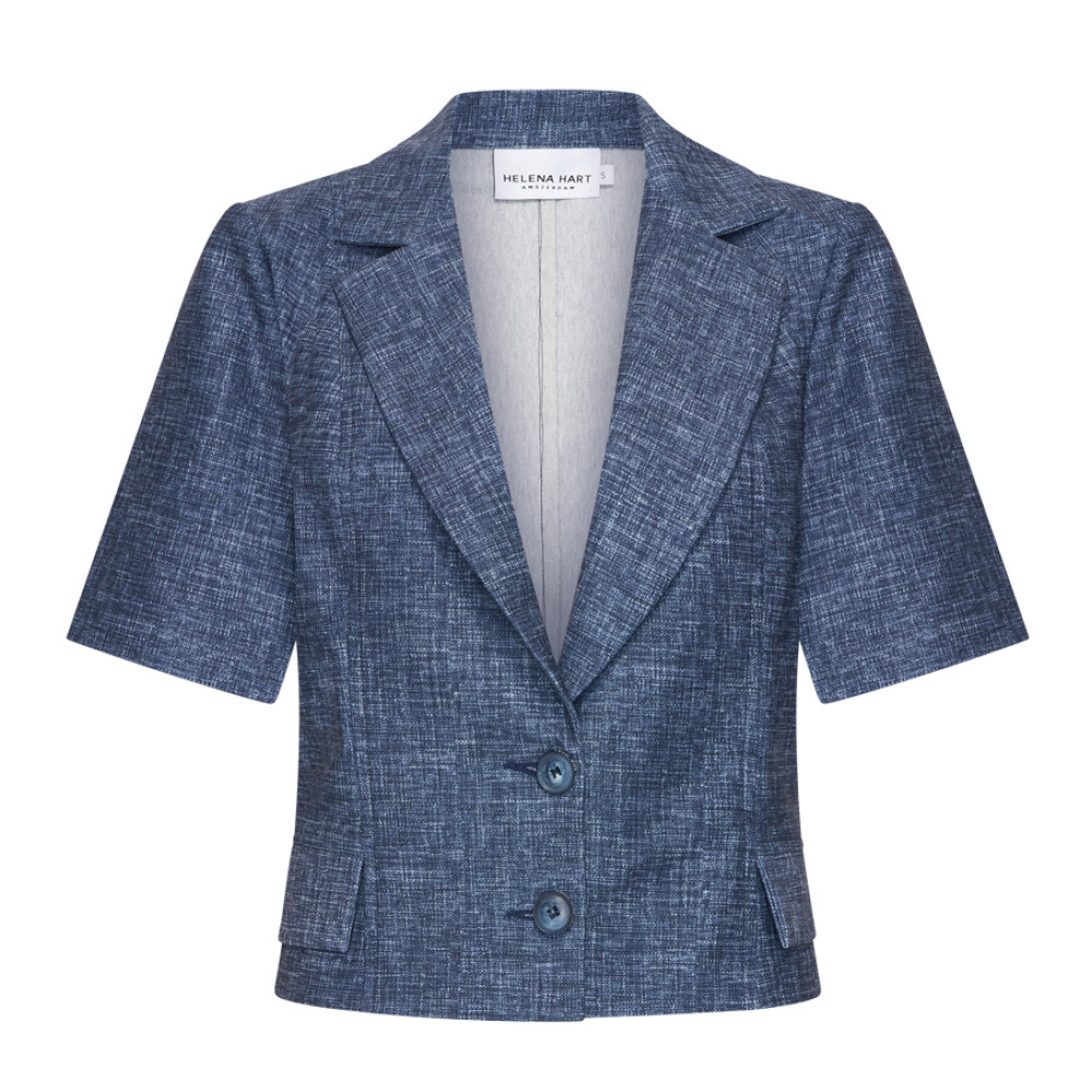 Stijlvolle Lano blazer van Helena Hart met een twist. Deze verkorte blazer heeft ook korte mouwen en een tweeknoopssluiting. Gemaakt van 65% polyester, 30% katoen en 5% elastaan Kleur : Matte Sand