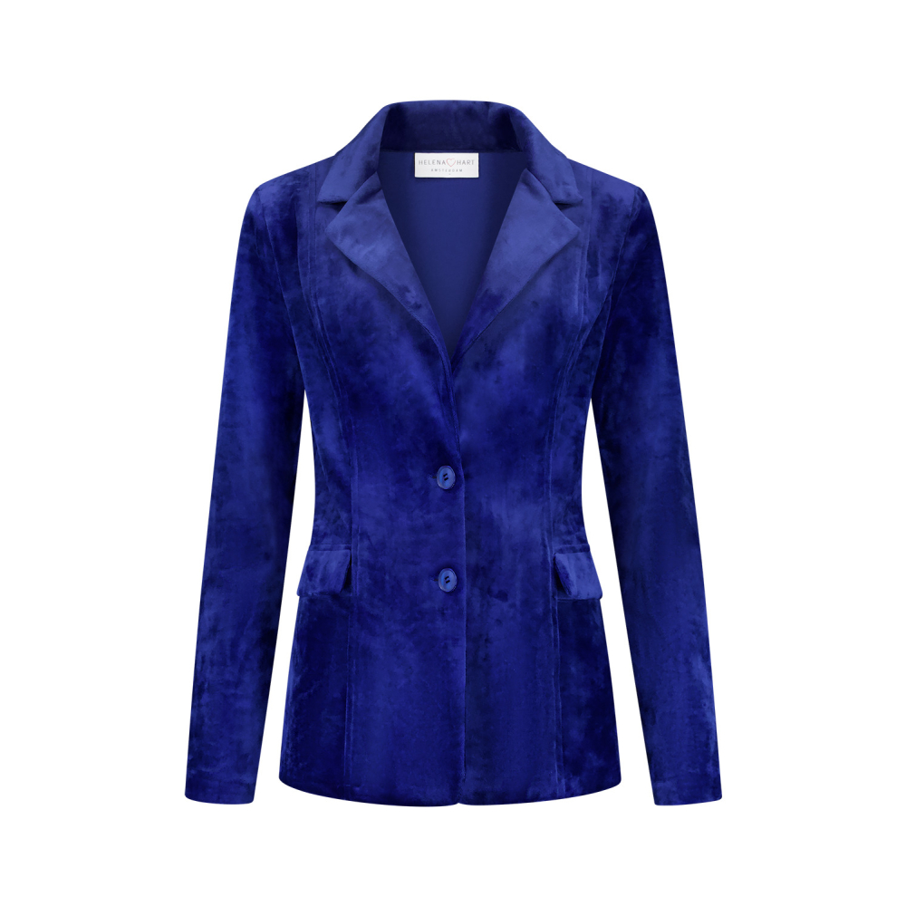 Deze velvet blazer van Helena Hart voelt heerlijk zacht en comfortabel aan. De blazer in midi lengte is afgewerkt met een sierlijke knoopsluiting. Gemaakt van 92% polyester en 8% elastaan Kleur : Royal Blue