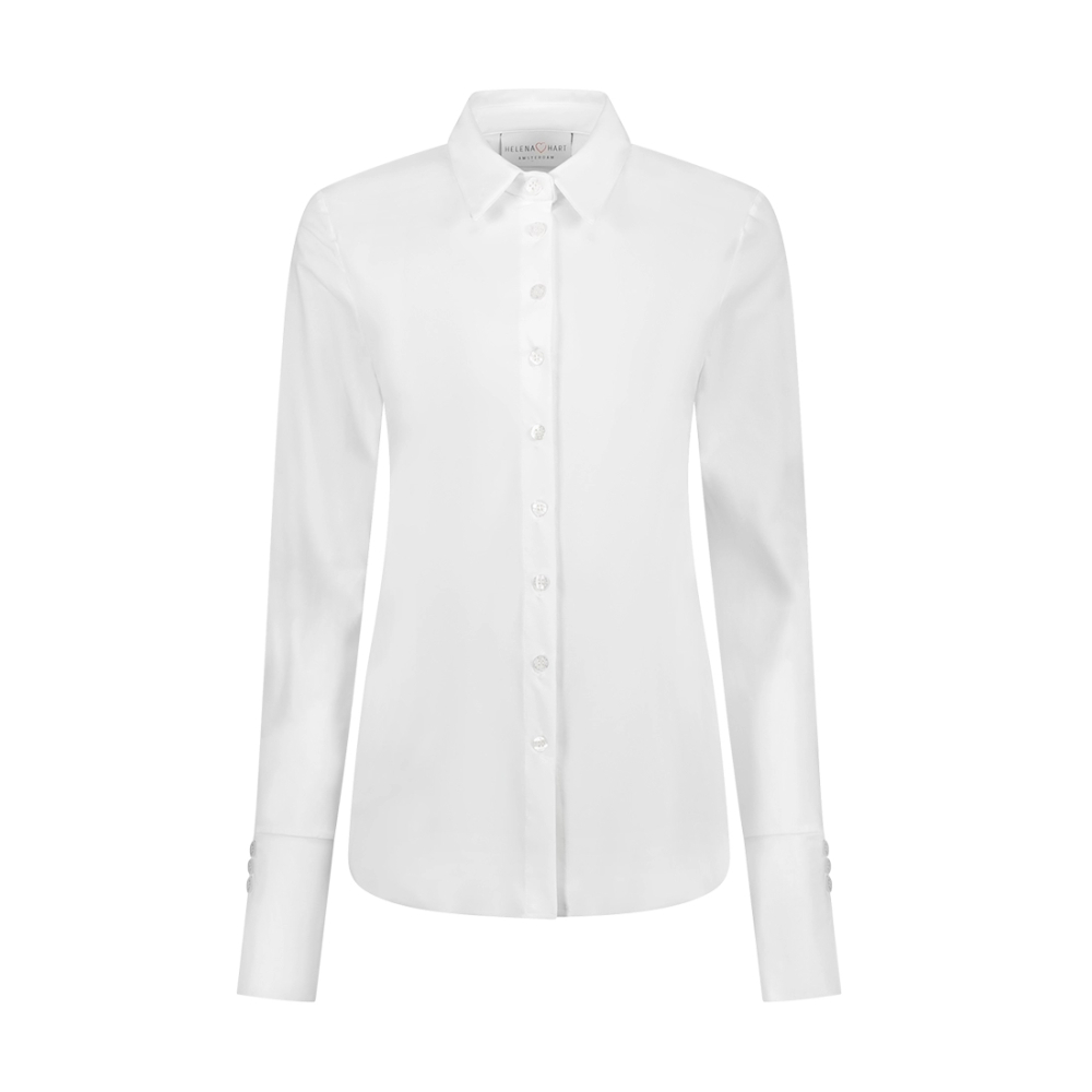 Effen blouse van Helena Hart in een transfer kwaliteit met een subtiel knoopdetail op de lange manchetten.