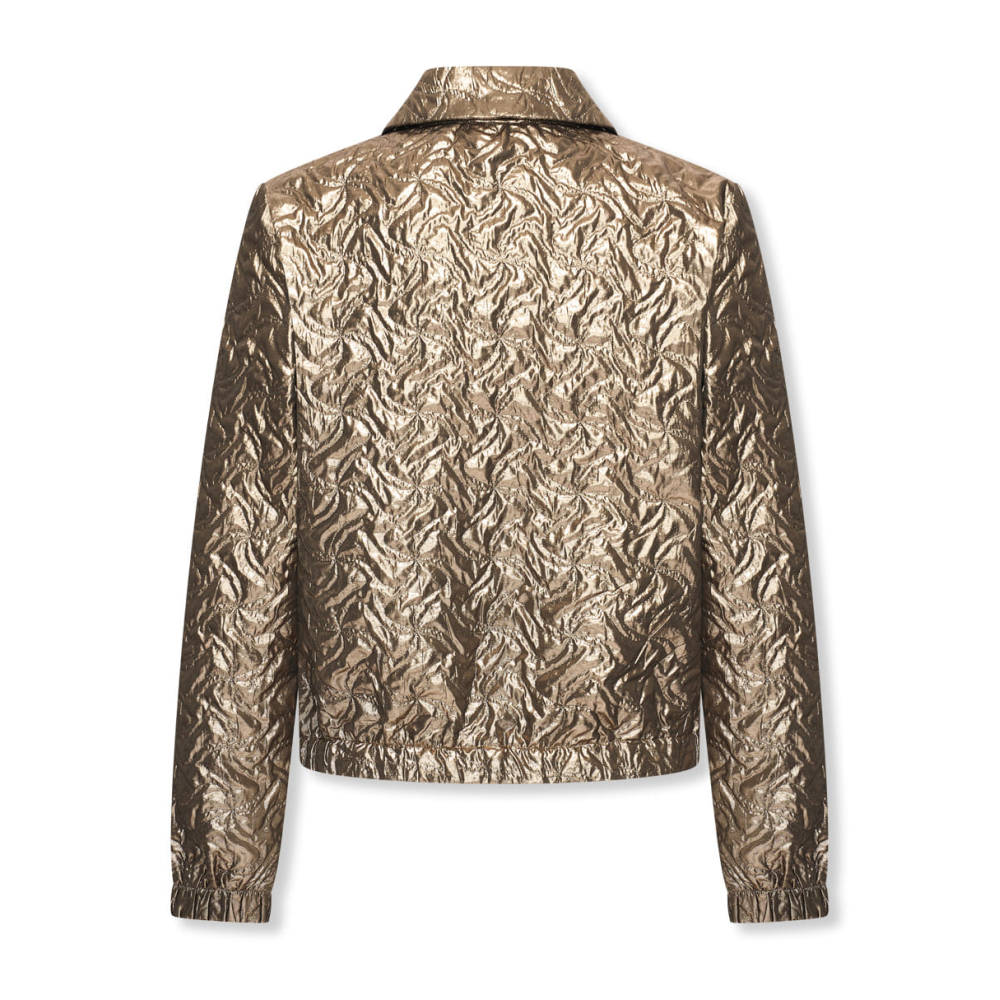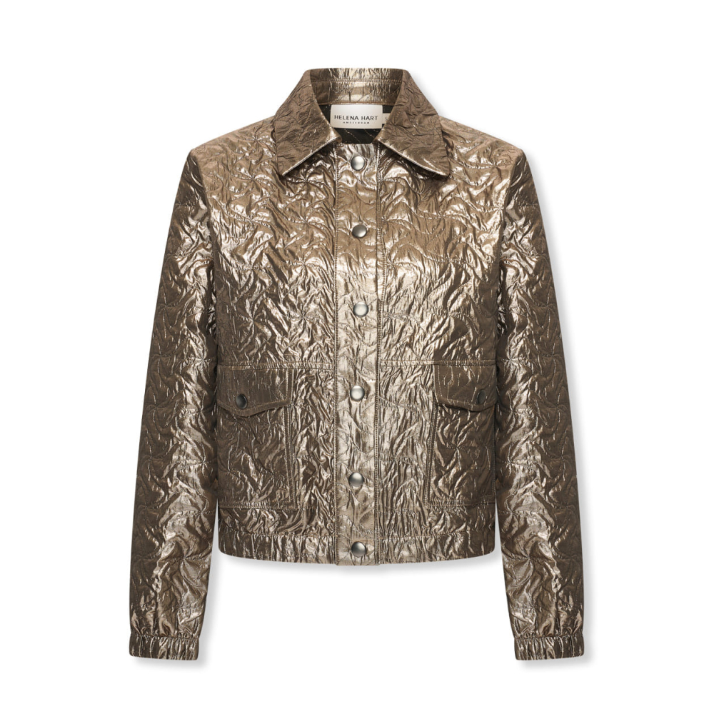 Stoer bomber jasje van Helena Hart in een metallic look. Dit jasje met drukknoopsluiting heeft twee opgestikte borstzakken en elastische boorden. Een echte must have voor jouw gaderobe!