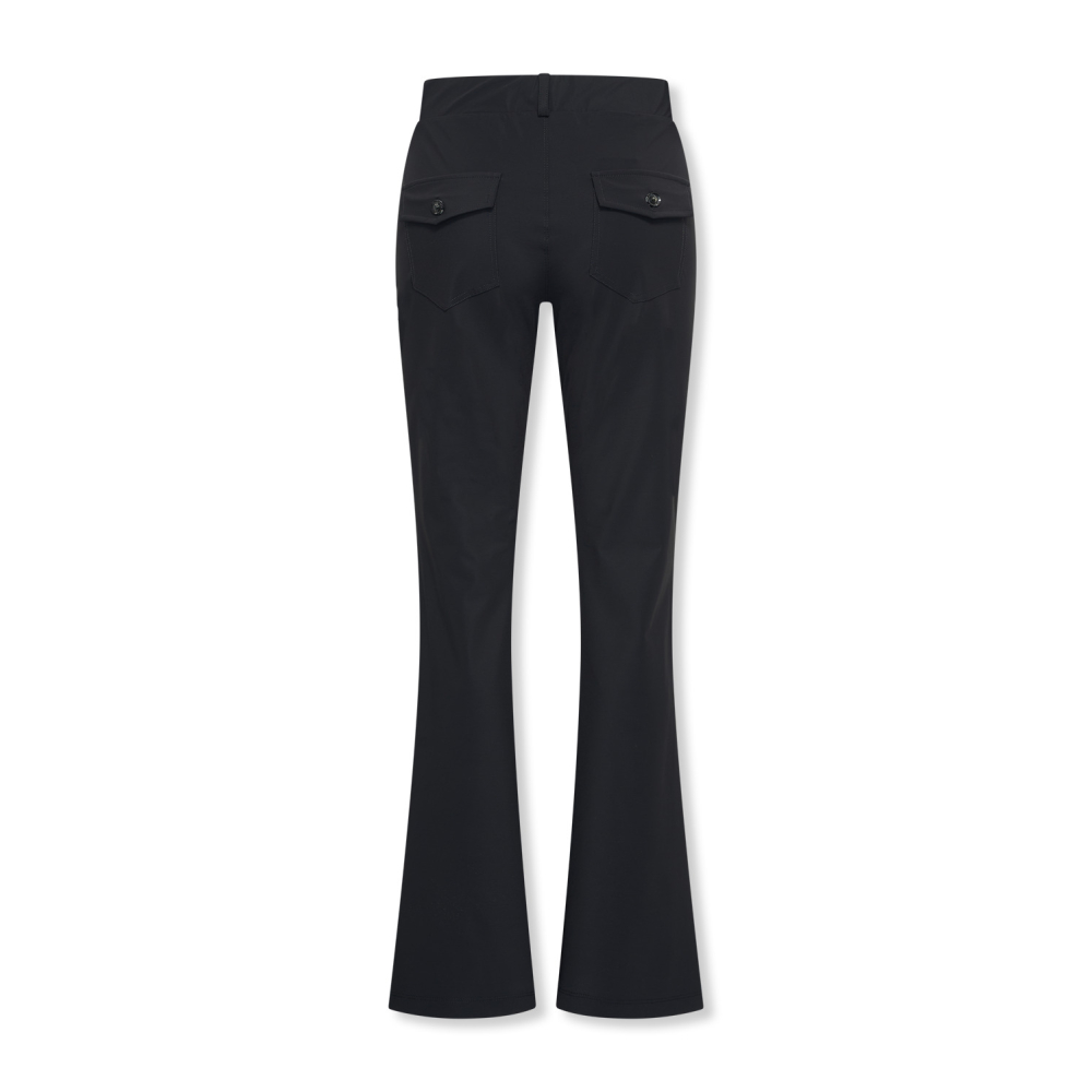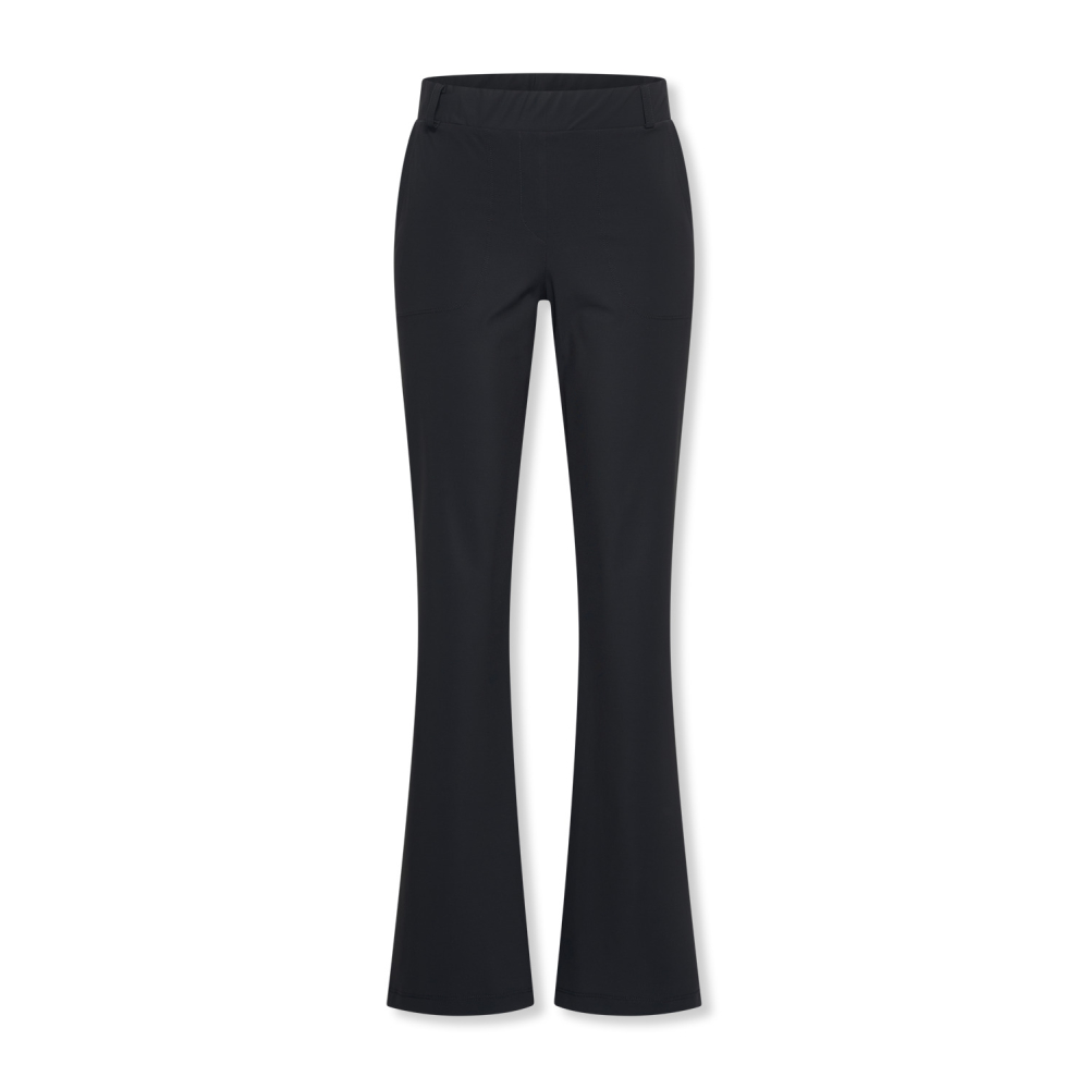 Elegante, aangesloten broek in travel kwaliteit van Helena Hart met flair broekspijpen en een elastische taille. Deze comfortabele broek is afgewerkt met striklussen, fijne steekzakken en faux paspelzakjes.