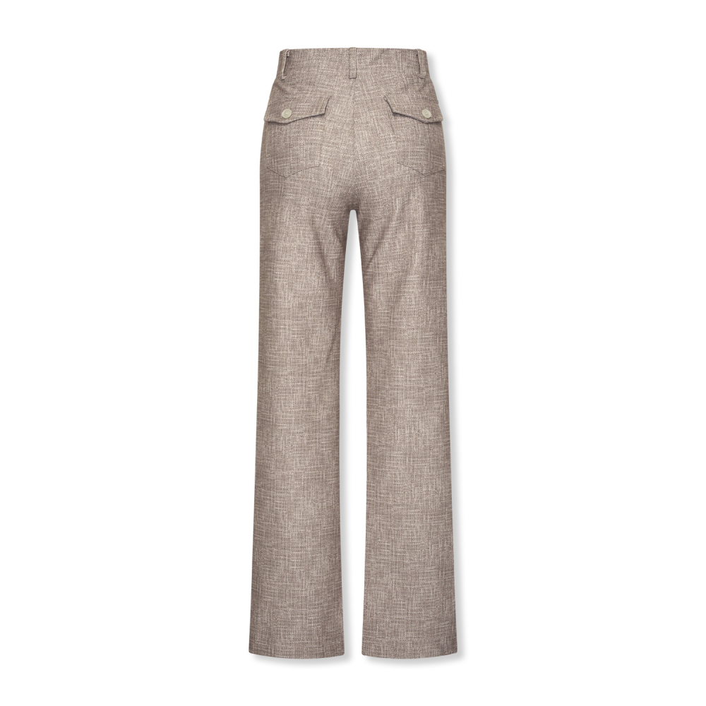 De broek Soul Lano is een lange, rechtvallende broek met wijde broekspijpen en een stijlvol dessin. Deze elegante broek van Helena Hart heeft een fijne, elastische band en draagt daardoor zeer comfortabel. Op de achterkant heeft de broek twee paspelzakjes.