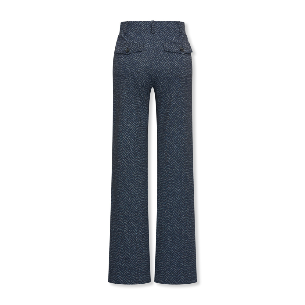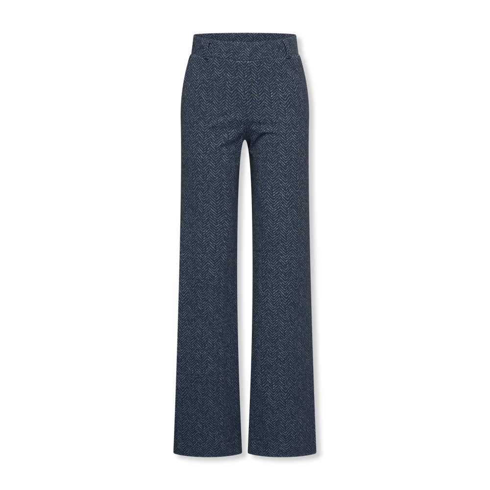 Elegante broek van Helena Hart met rechte, wijde broekspijpen. Deze broek met zigzag patroon is afgewerkt met fijne steekzakken, striklussen en paspelzakjes.