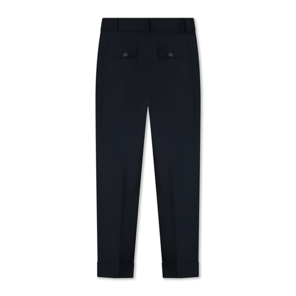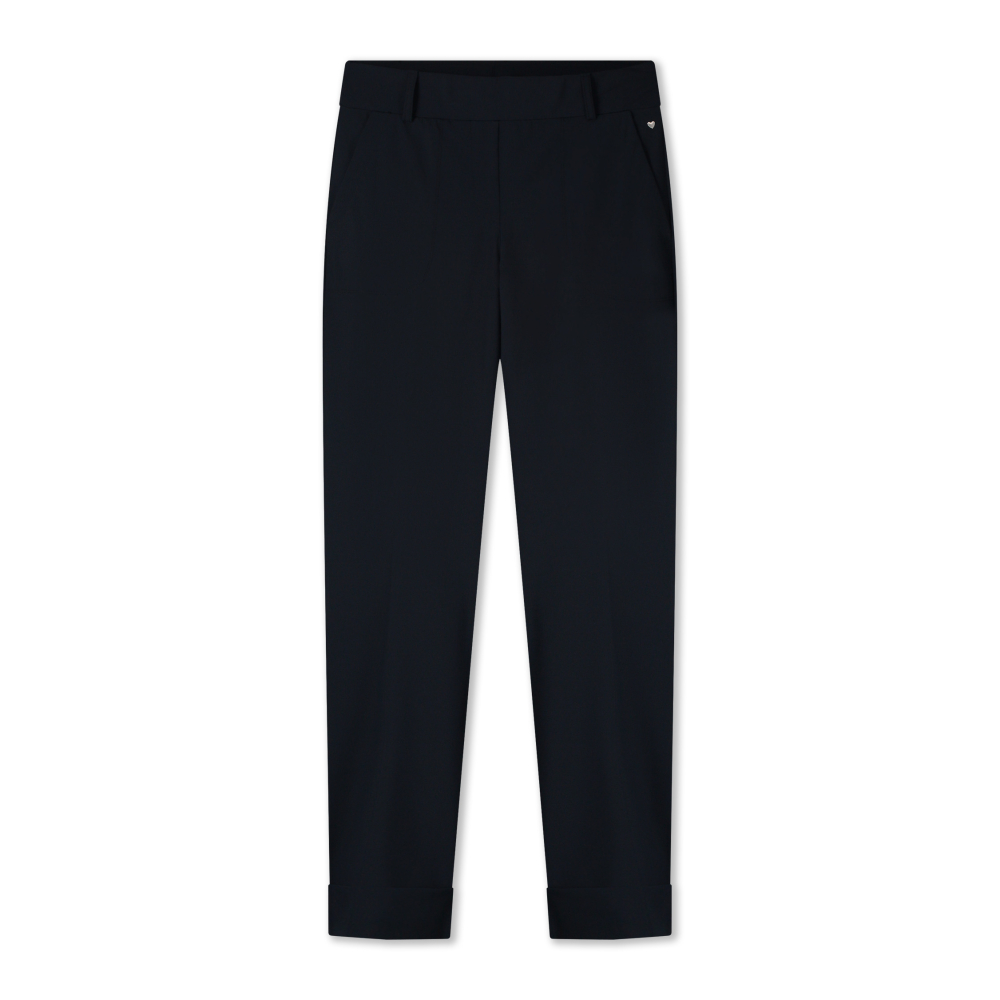 Elegante broek van Helena Hart met rechte broekspijpen met omslagje. Deze chino broek is van een mooie travel kwaliteit en afgewerkt met fijne steekzakken, riemlussen en paspelzakjes.
