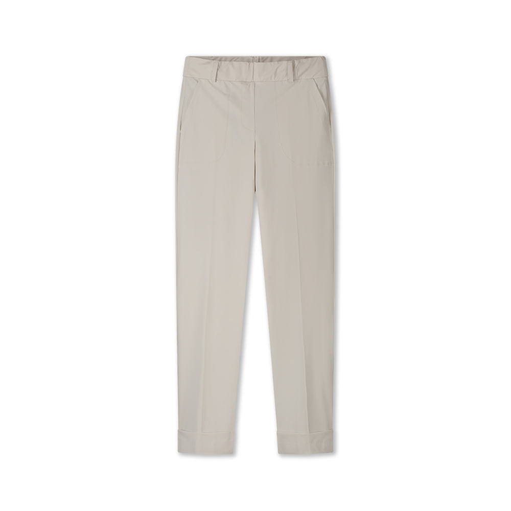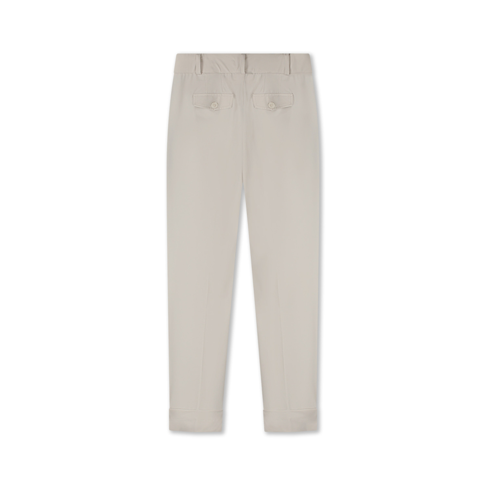 Elegante broek van Helena Hart met rechte broekspijpen met omslagje. Deze chino broek is van een mooie travel kwaliteit en afgewerkt met fijne steekzakken, riemlussen en paspelzakjes.