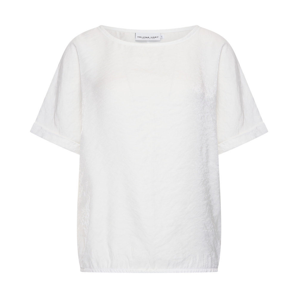 Een prachtige top van Helena Hart met een elegante ronde hals en een subtiele crinkle structuur. Gemaakt van 85% viscose en 15% polyester Kleur : Wit