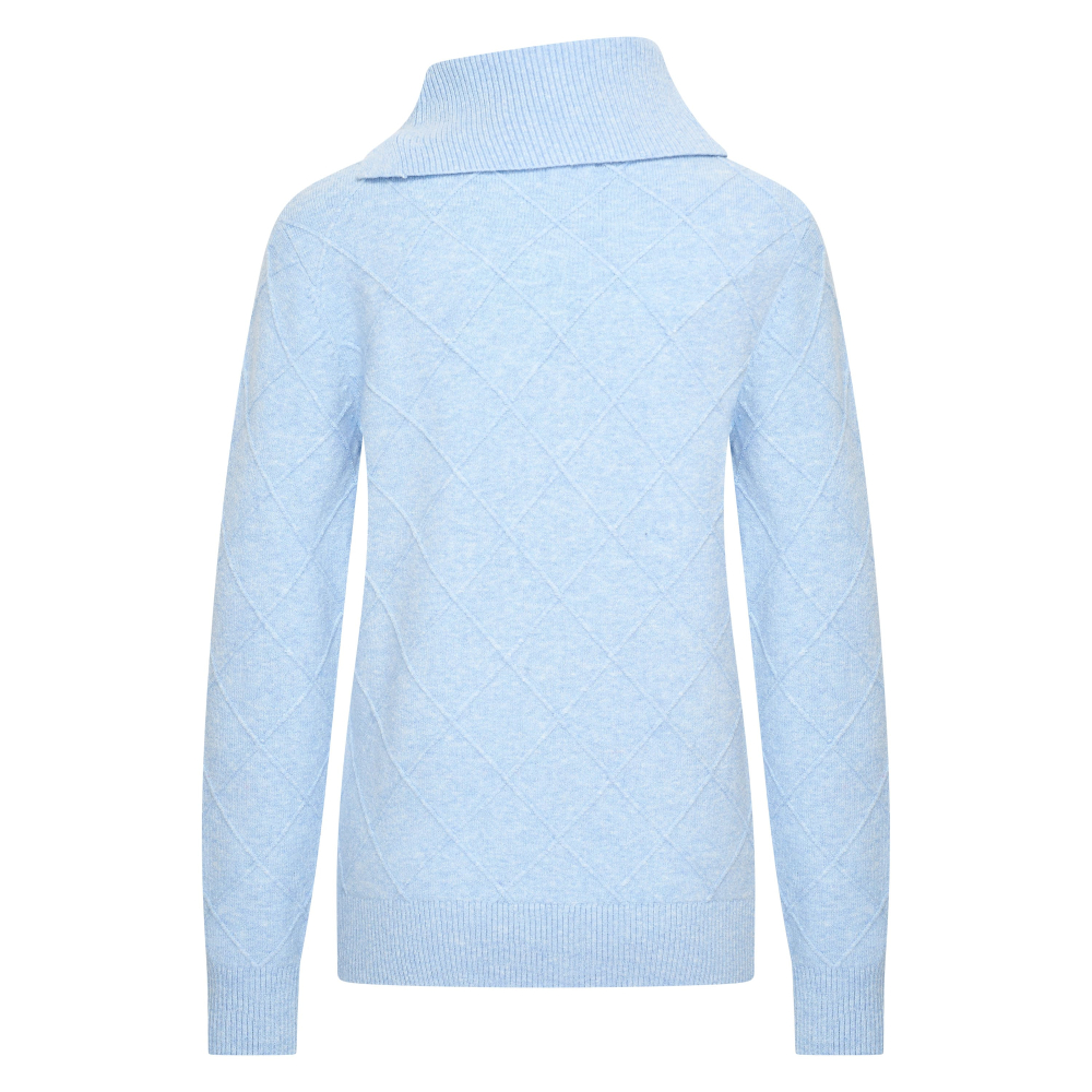 Gebreide effen coltrui van HV Society met een diamantvormig gebreid patroon. Deze trui heeft een grote oversized kraag en ribboorden.