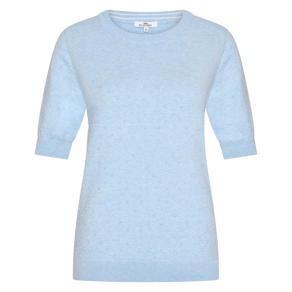 Fijngebreide pullover van HV Society met een ronde hals, korte mouwtjes en een subtiel gebreid patroon. Regular Fit Gemaakt van 80% katoen, 28% polyamide en 2% elastaan Kleur : Light Blue