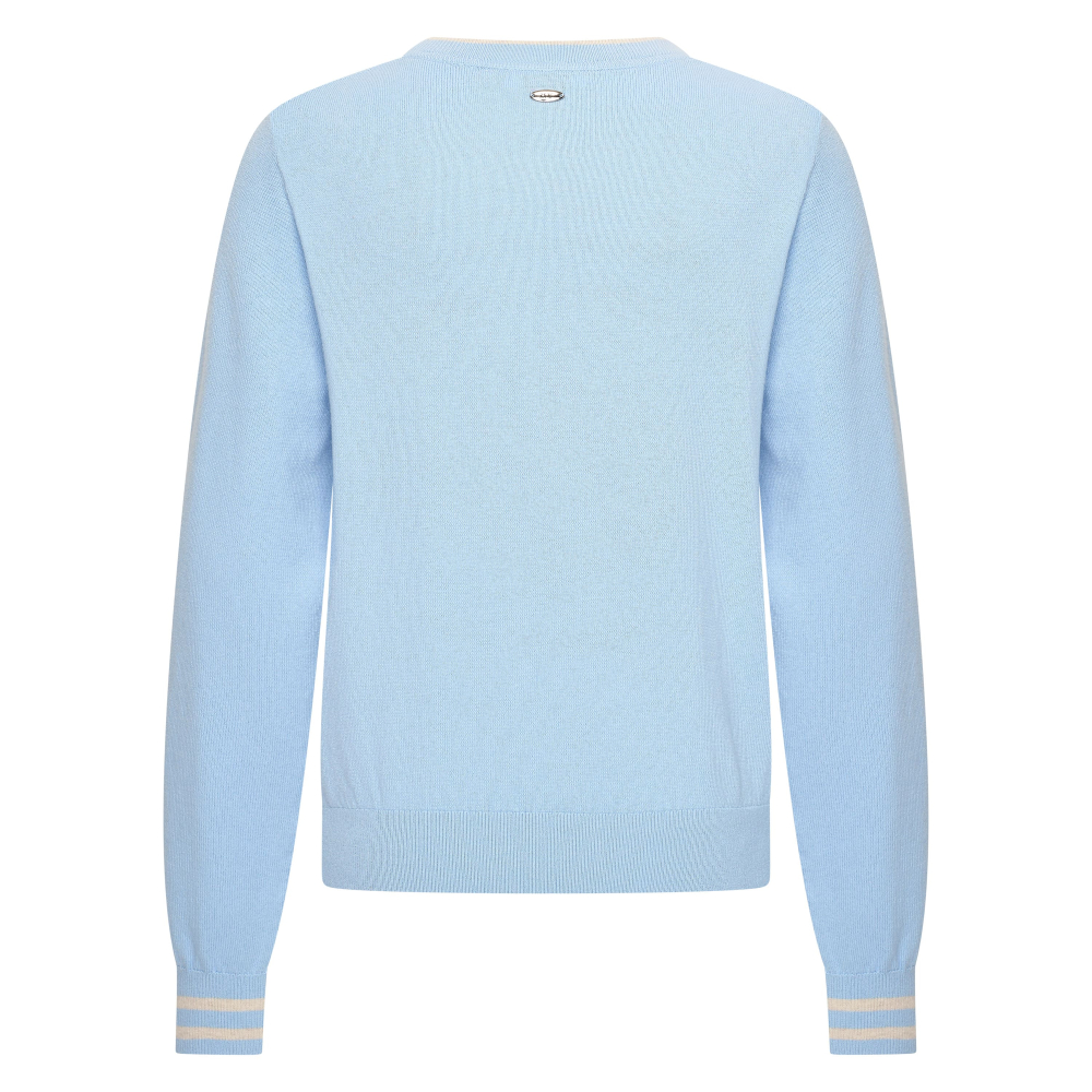 Gebreide trui van HV Society met een ronde hals en een klassiek ruitpatroon. De mouwen hebben ook contrasterende strepen bij de manchetten.