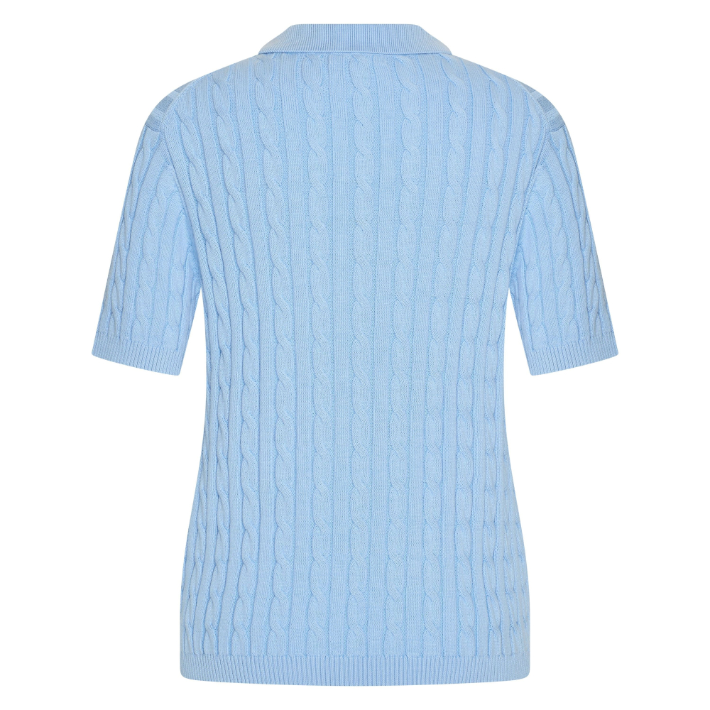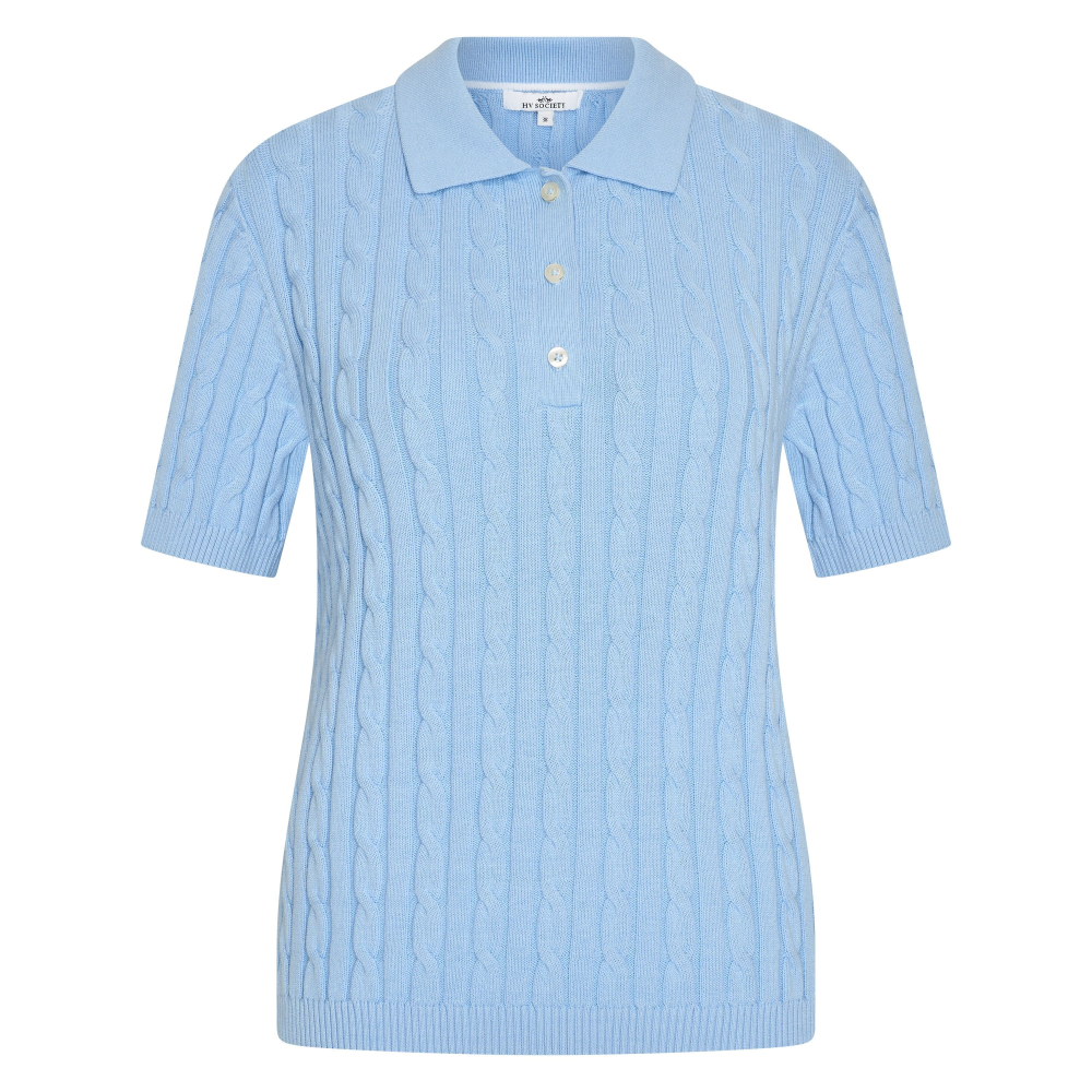 Heerlijke gebreide pullover polo van HV Society met een polokraag en korte mouwtjes. Dit truitje heeft geribde boorden en een kabelpatroon. Regular Fit Gemaakt van 100% katoen Kleur : Light Blue