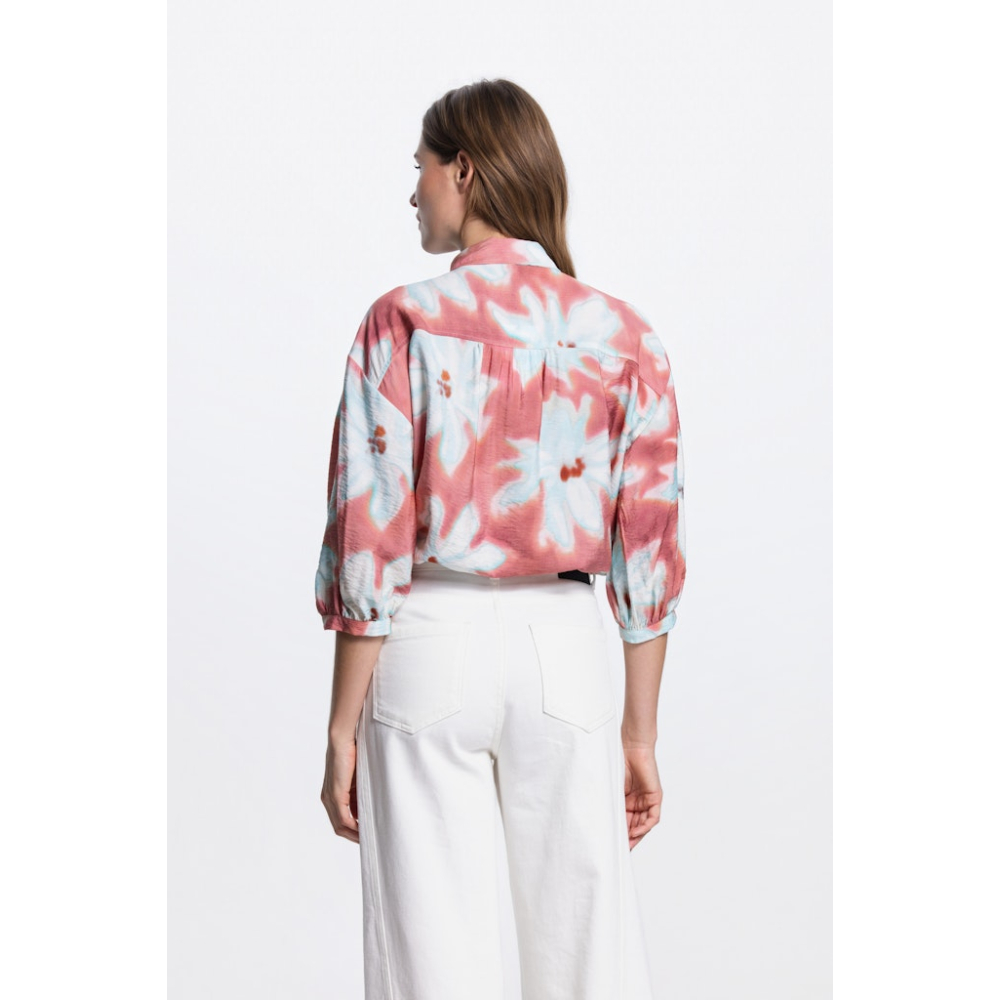 Prachtige blouse van Jansen Amsterdam met 3/4 mouwen en een levendige bloemenprint. Comfortabel, stijlvol en perfect voor een casual-chic of verfijnde look. Gemaakt van 85% viscose en 15% nylon Kleur : Blush