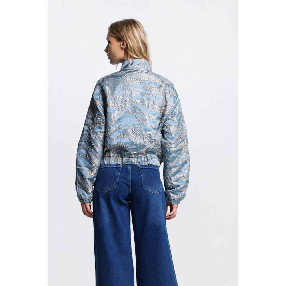 Dit stijlvolle bomber jasje van Jansen Amsterdam in een jacquard kwaliteit heeft een elegant gouden barok design. Voorzien van steekzakken, ritsluiting, subtiel boord bij de halslijn van dezelfde stof en elastiek in onderrand en mouwboorden. Gevoerd voor extra comfort en een luxe uitstraling.